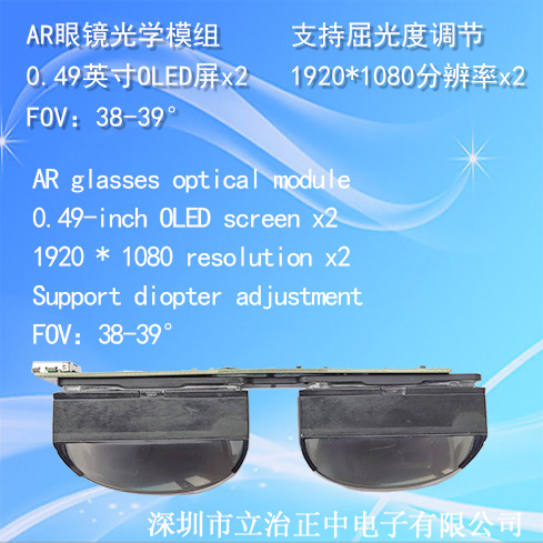 OLS049-TYP is an optical module suitable for consumer grade AR glasses, which can be made into lightweight AR sunglasses and other forms of products, achieving the function of "portable large screen". This product supports scenarios such as watching movies, entertainment, and office, meeting the needs of most consumers for work, life, and various entertainment. The product is based on a 0.49 inch screen display design and consists of optical lenses, structural components, and chips.
