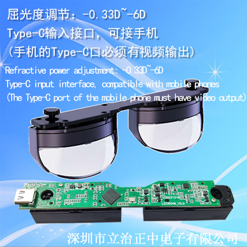 此双目眼镜模组为裸模组,我们的驱动电路板上的视频接口是Type-C口,电是从Type-C里获取的。需要您提供Type-C视频信号输入,您的设备Type-C 输出口必须要有视频输出,有些设备有Type-C口,但是没有视频数据输出是不行的。